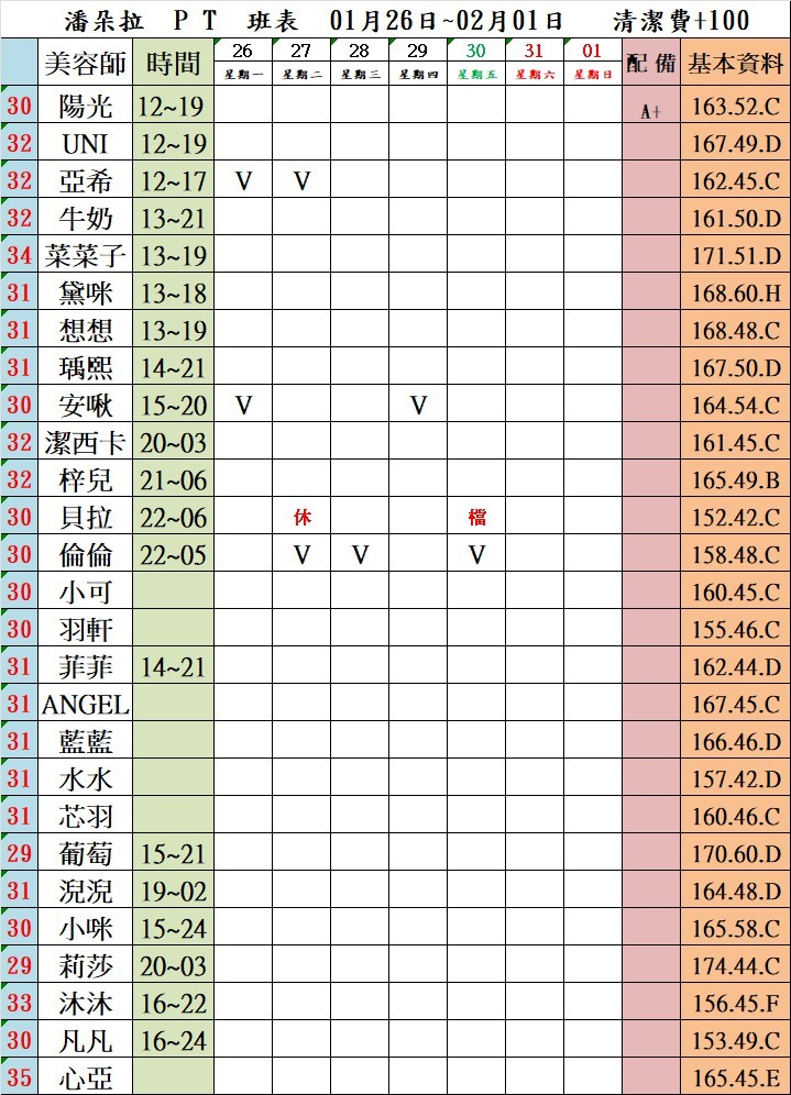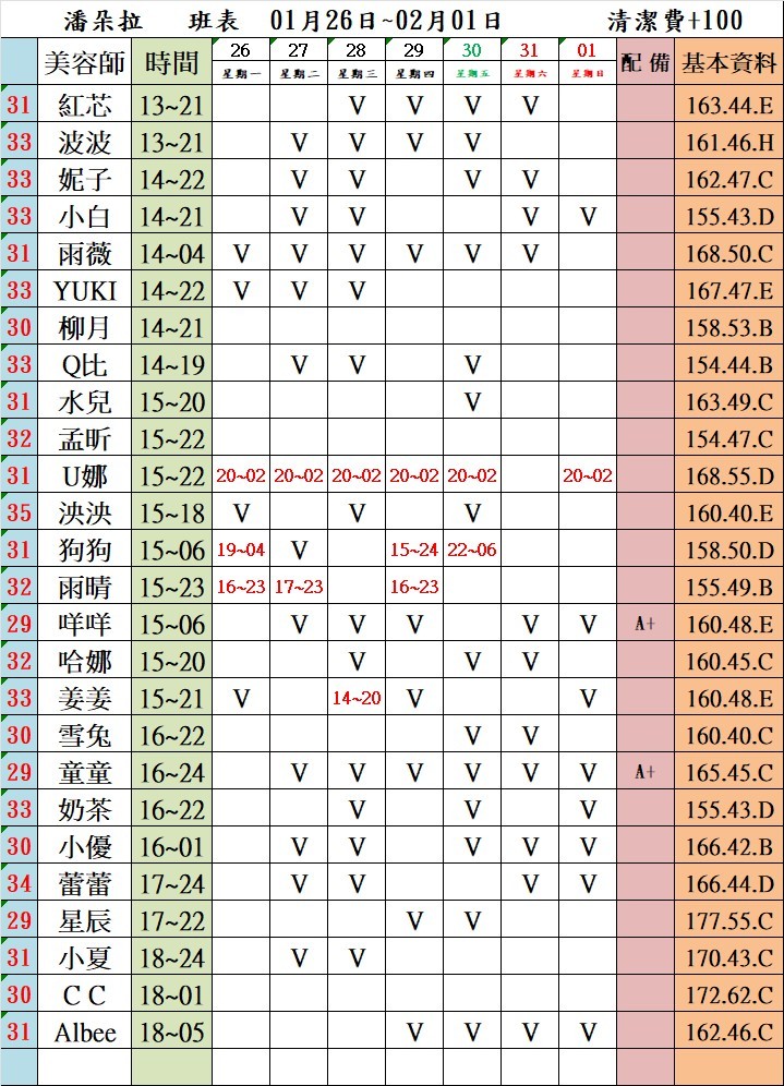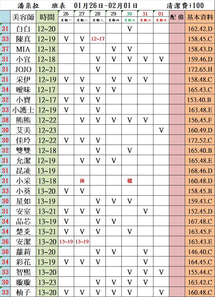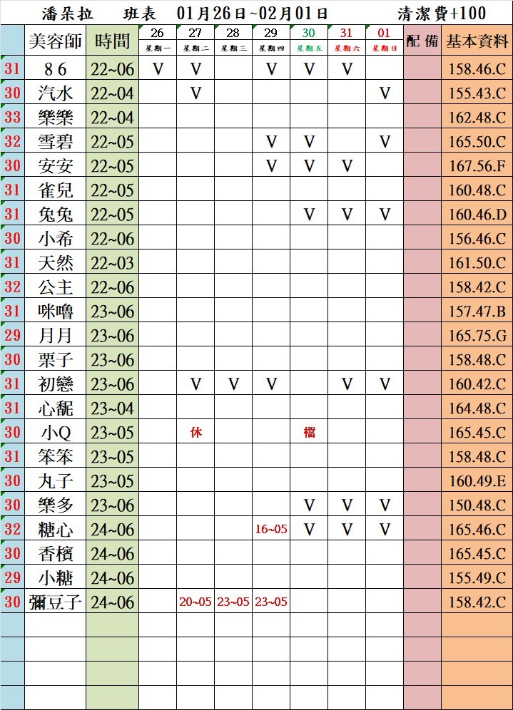 有打勾即報班,若是寫時段,代表當日為該上班時段
