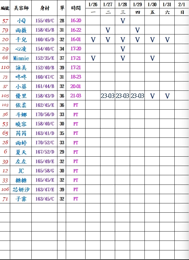 若PT有報班也有時間,代表當週美容師願意給出時間