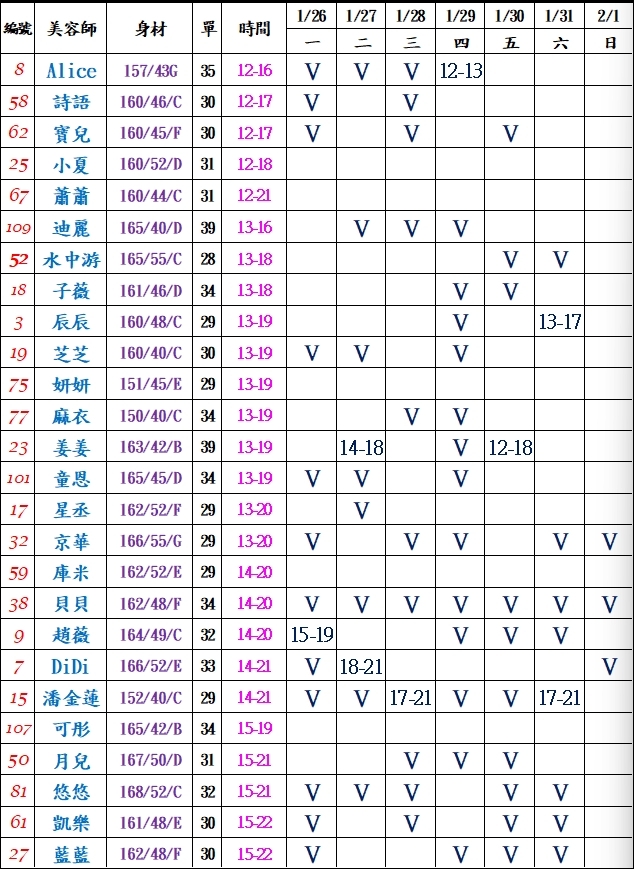 PT=兼職=基本上她想來就來,不會報班,人到才能約