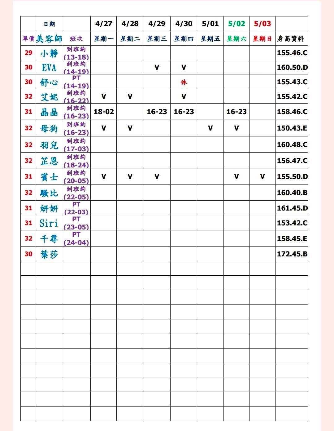 水妍班表