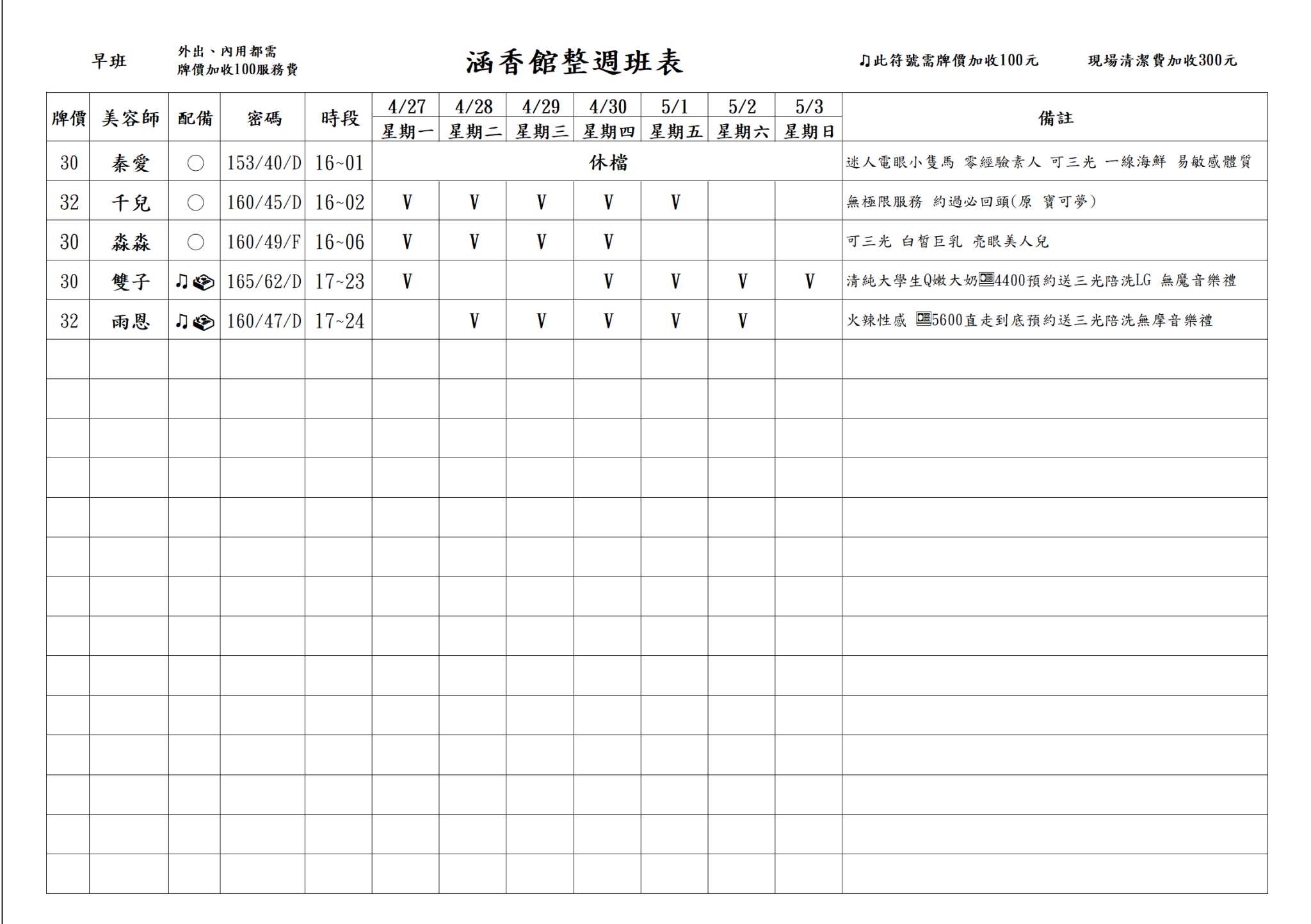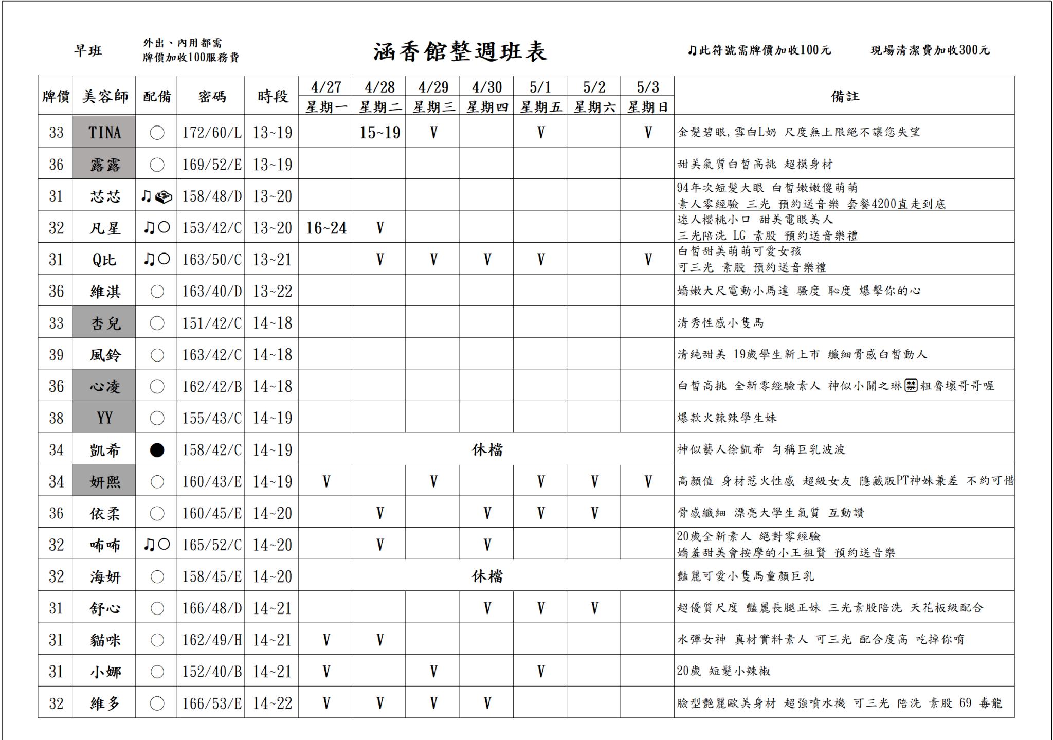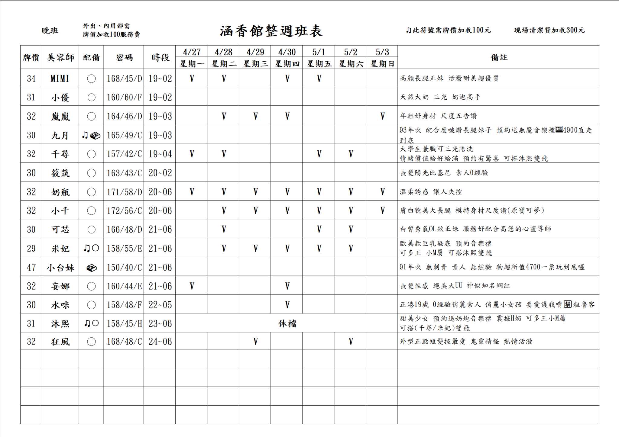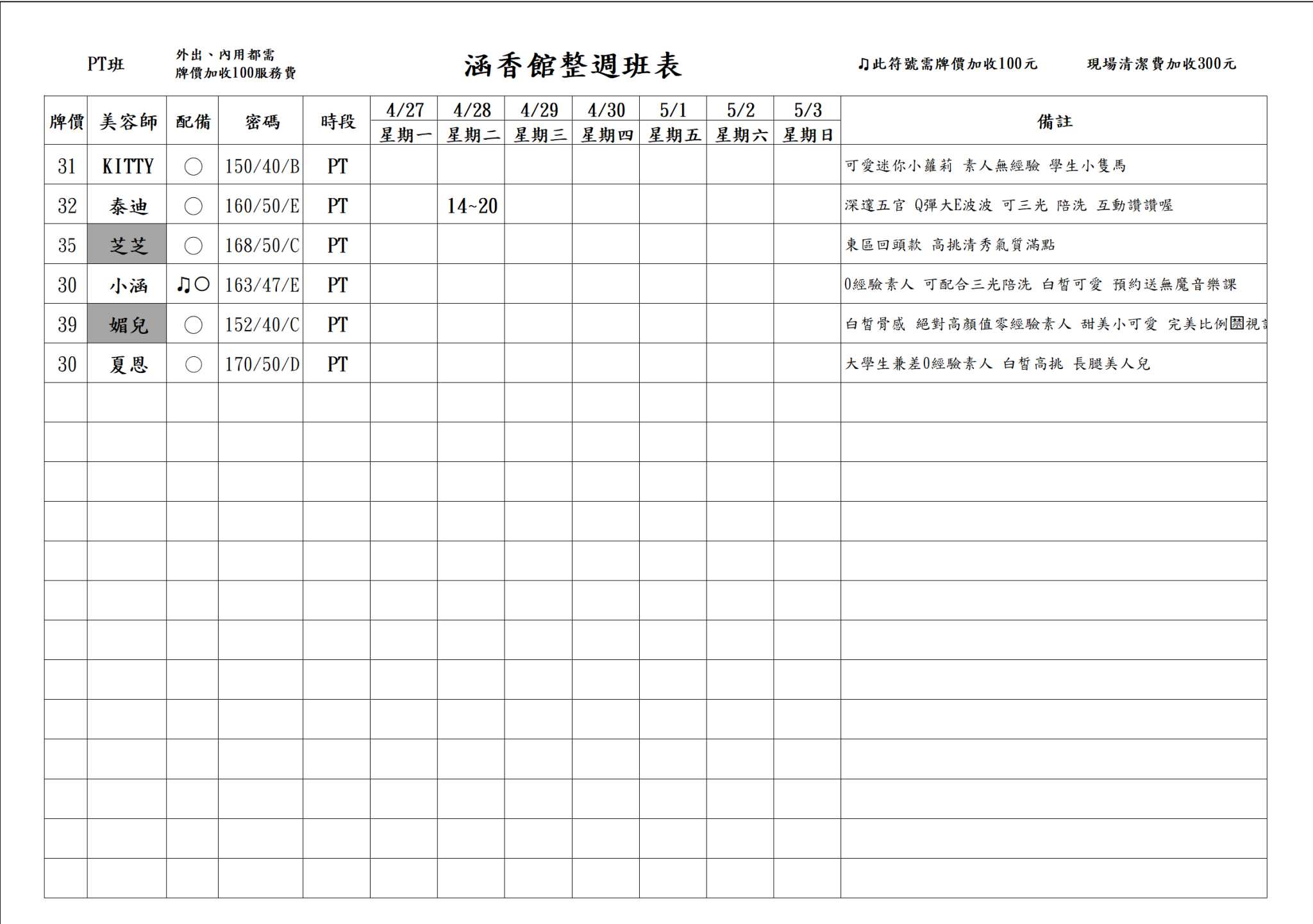 3500為搶約款(基本上星期天按摩班表一出來就得搶)