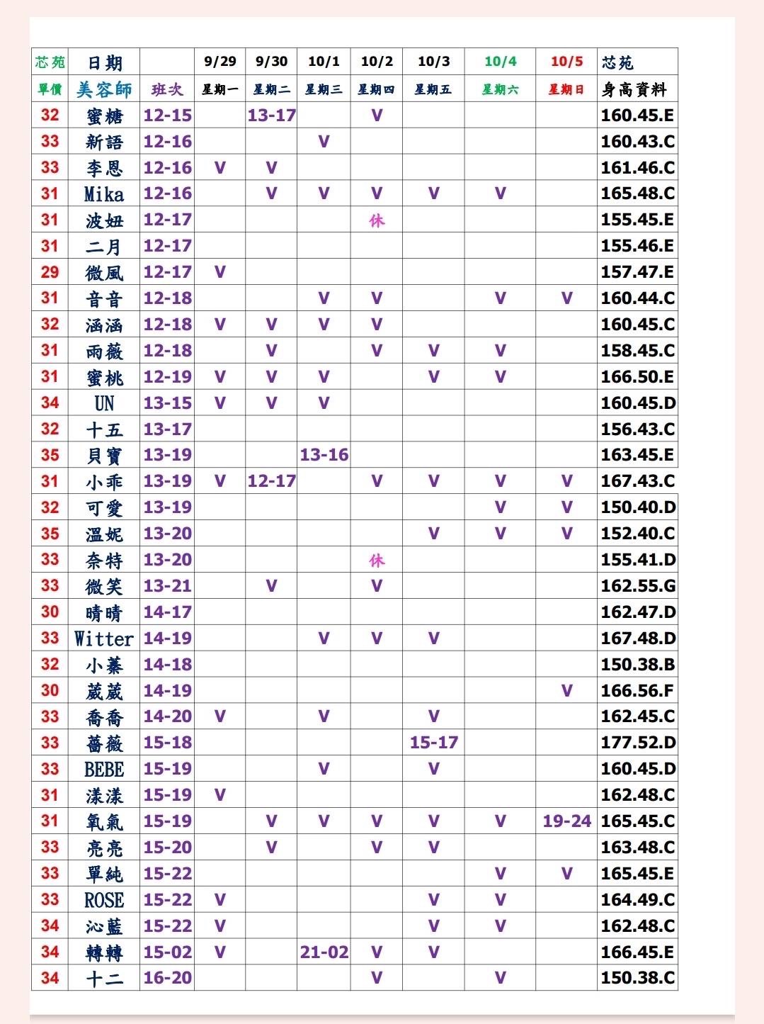 有打勾即報班,若是寫時段,代表當日為該上班時段
