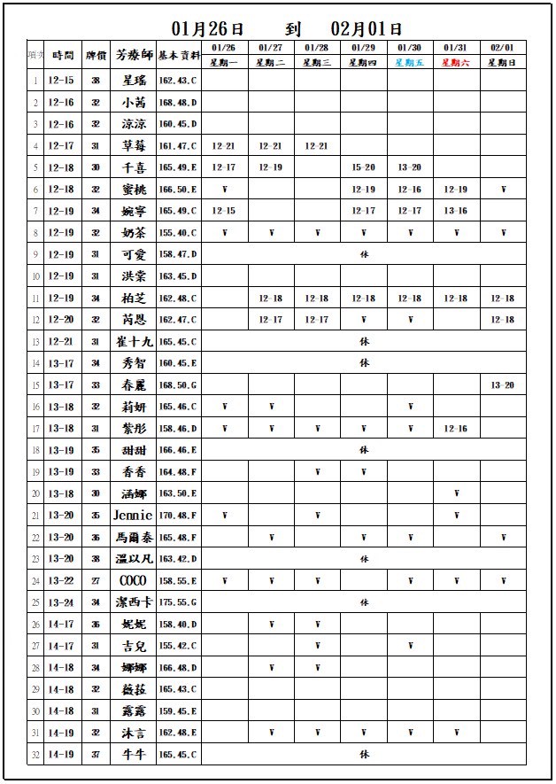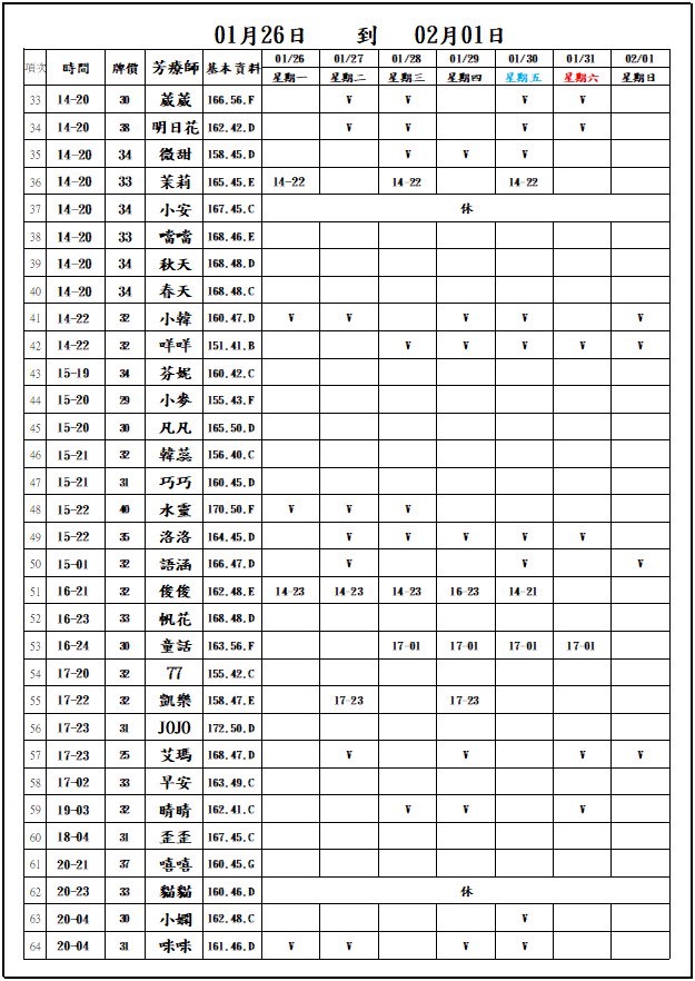 3500以上為搶約款(基本上星期天按摩班表一出來就得搶)