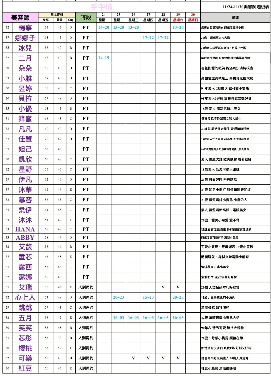 PT=兼職=基本上她想來就來,不會報班,人到才能約